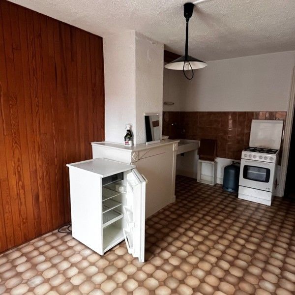Entrée sur pièce principale - cuisine en partie équipée (frigo + gazinière avec four) - salle d'eau avec WC