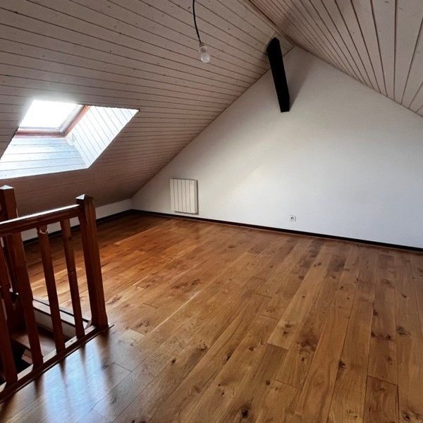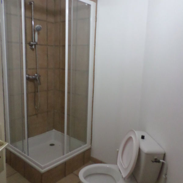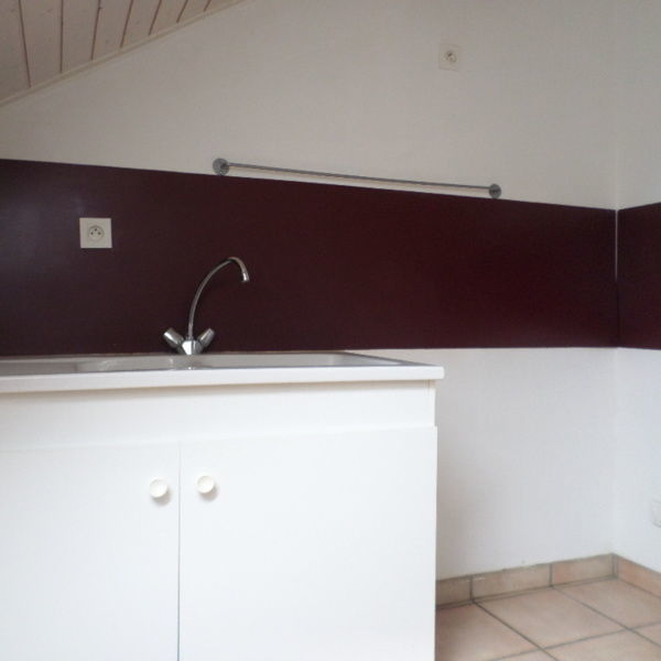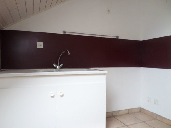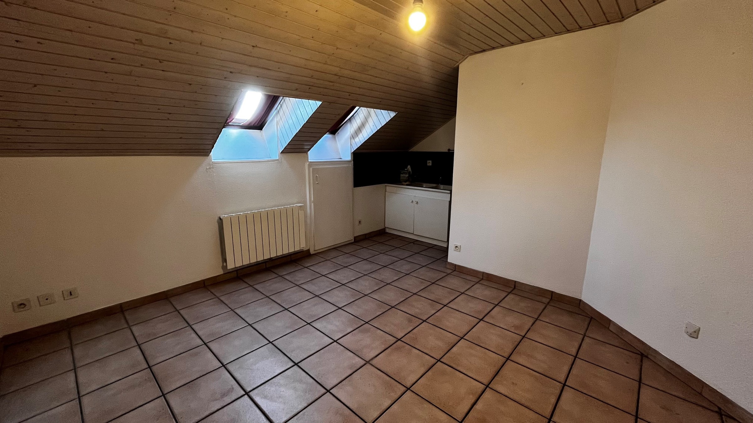 Entrée sur salon / séjour avec coin cuisine - salle d'eau avec WC - Chambre en mezannine