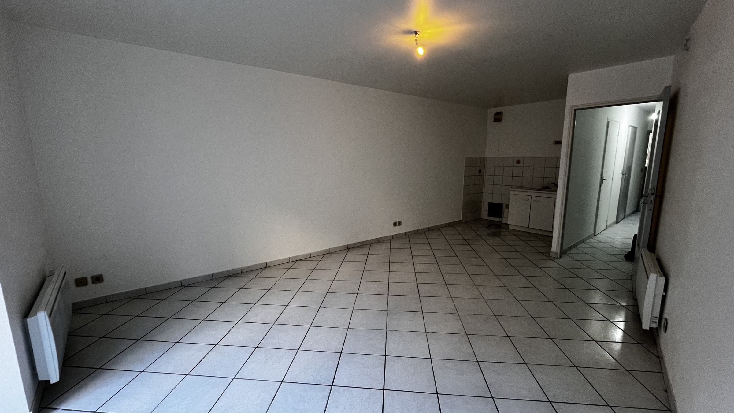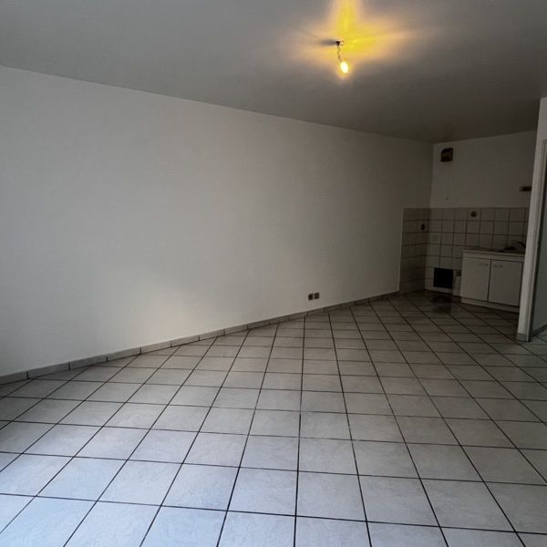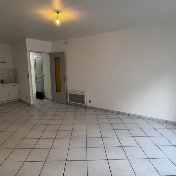Entrée sur séjour avec coin cuisine - salle de bain - WC - chambre avec placard