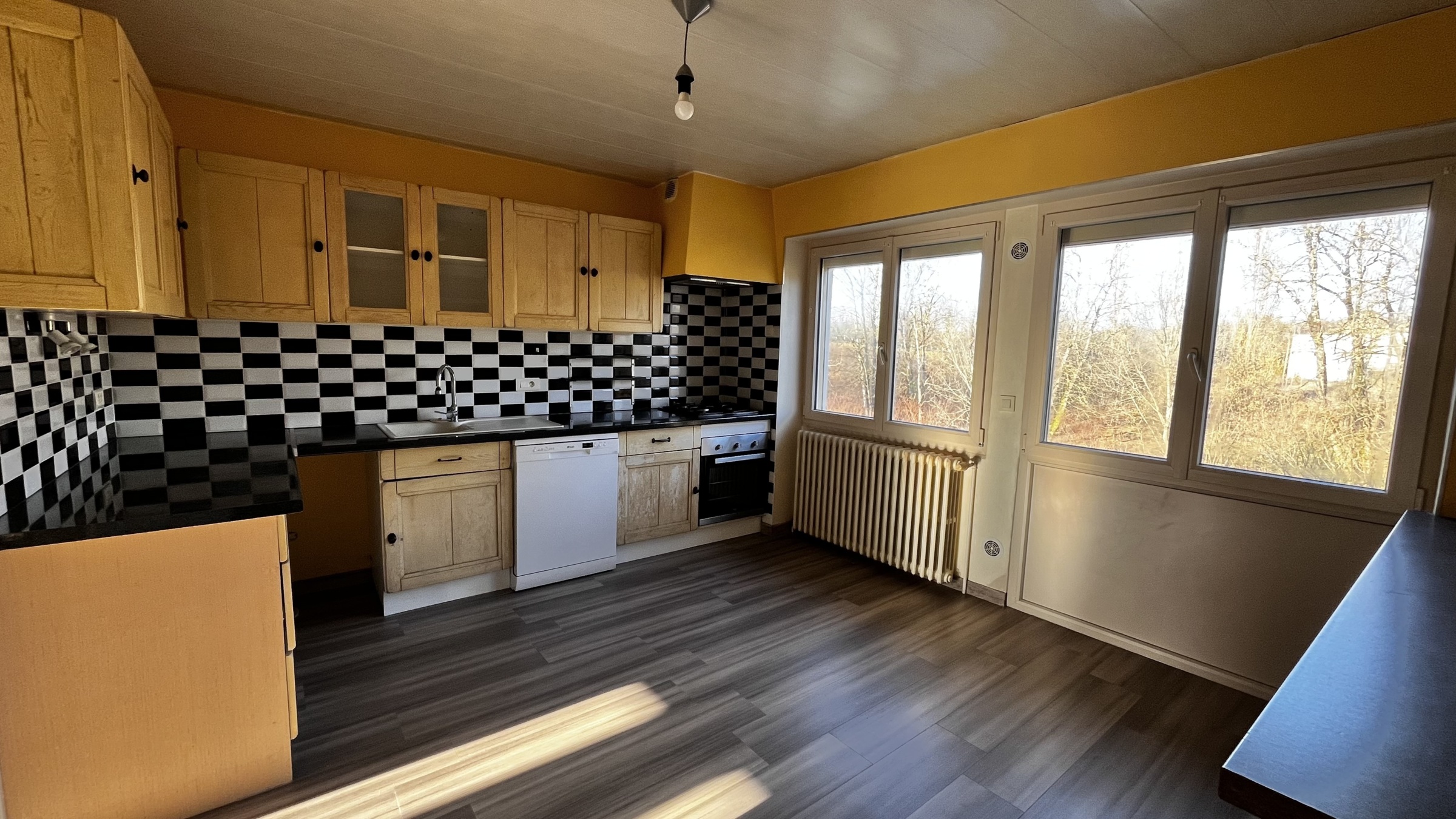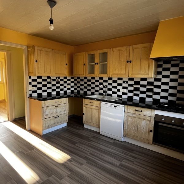 Au 1er étage : palier avec placards et WC avec lave-mains - vaste salon / séjour - cuisine meublée et équipée (lave-vaisselle + plaque gaz + hotte + four)- 4 chambres avec placards dont une donnant accès au dernier étage