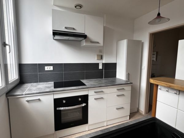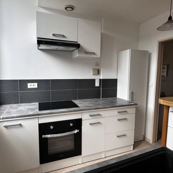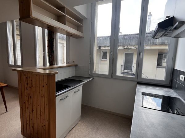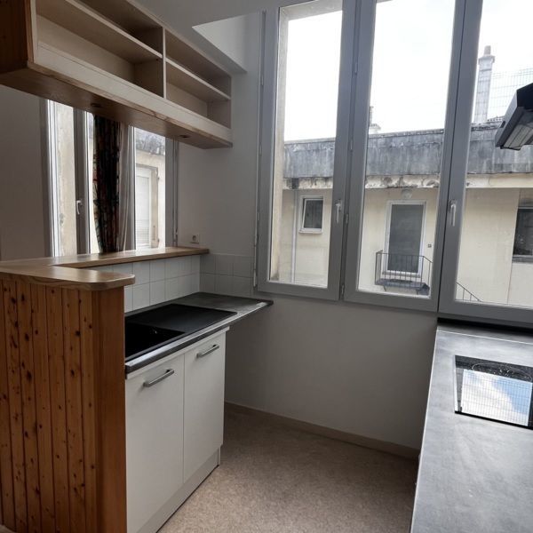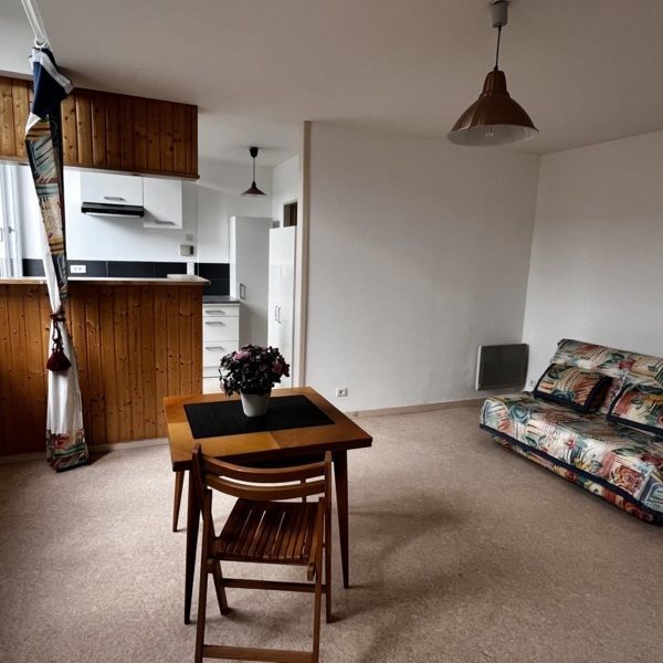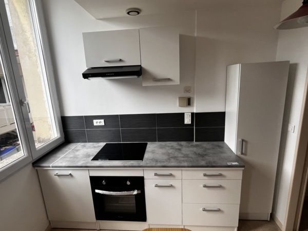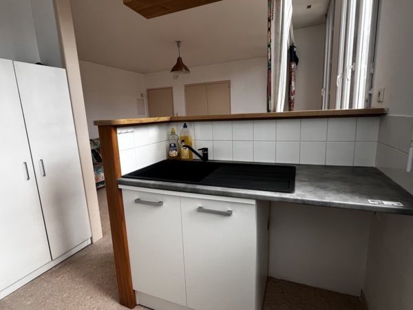 Entrée sur pièce principale avec placard- cuisine meublée et équipée (four - plaque - hotte) - salle d'eau avec WC + placard