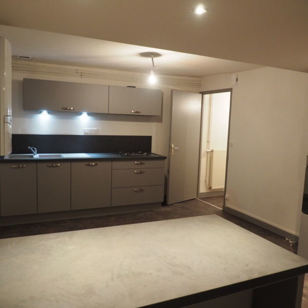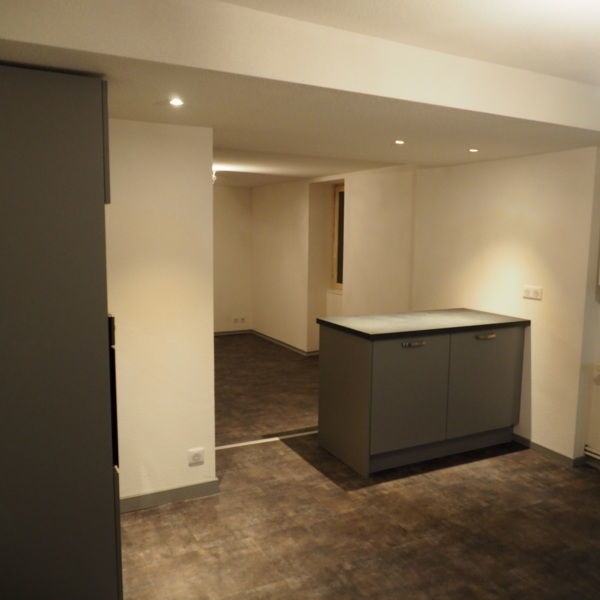 Entrée - WC - salle de bains - salon/séjour avec cuisine aménagée et équipée (hotte - four- feu gaz - lave-vaisselle) - chambre