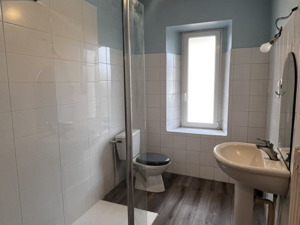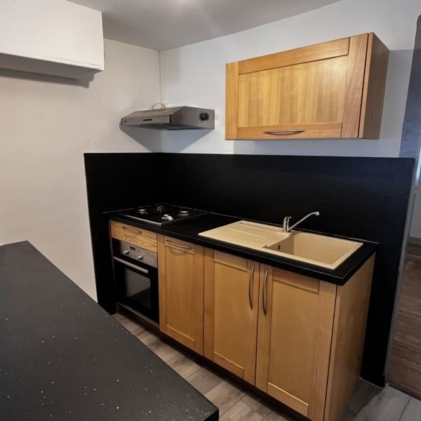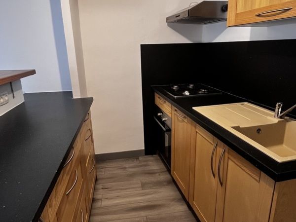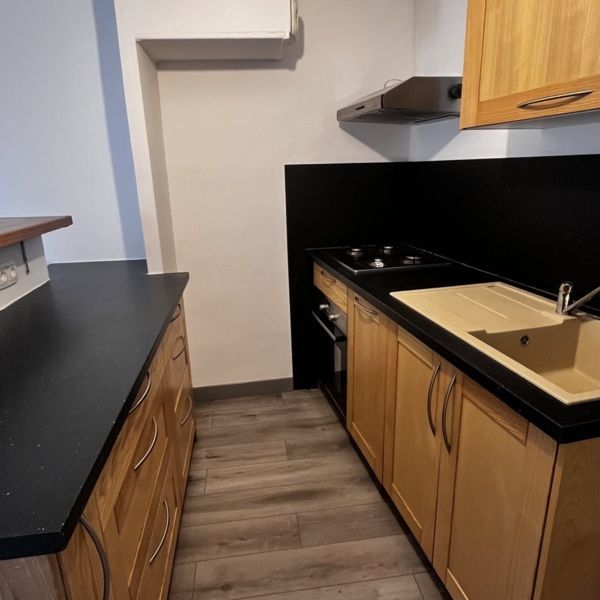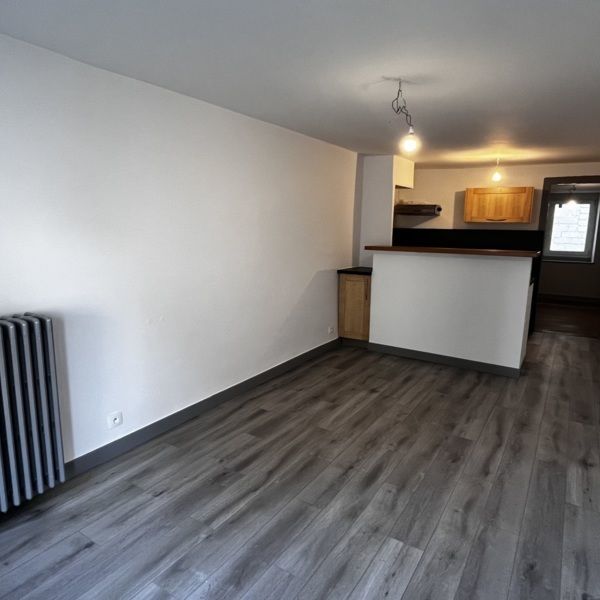 Séjour avec coin cuisine meublée et entièrement équipée (Four - plaques gaz - hotte - lave-vaisselle)- vaste salon - salle d'eau avec WC - 2 chambres sur arrière dont une avec placard