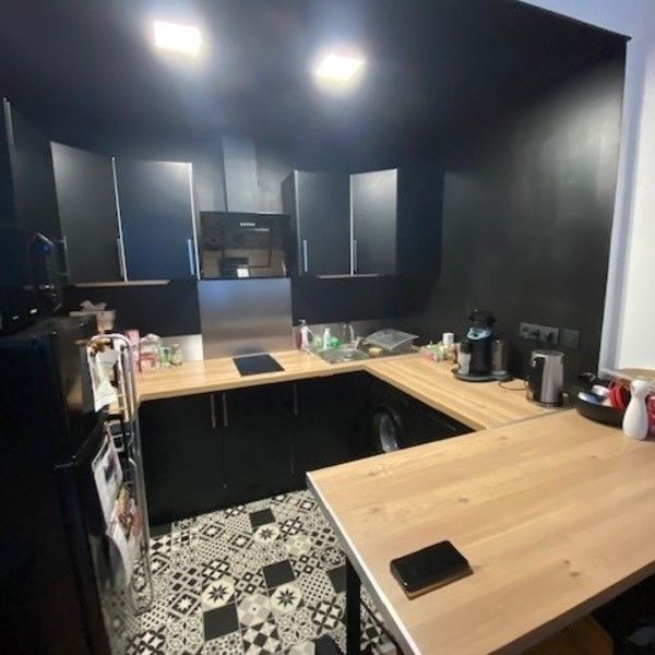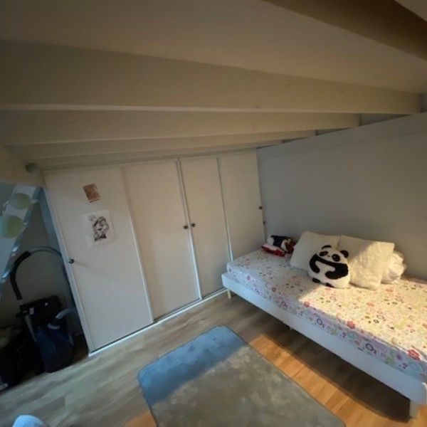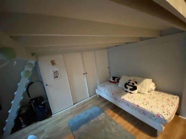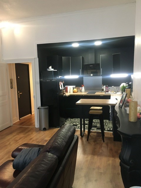 Entrée - séjour sur rue - cuisine ouverte meublée et entièrement équipée (Frigo - plaque induction - hotte - micro-onde - machine à laver) - chambre avec mezzanine et placard (sur cour)