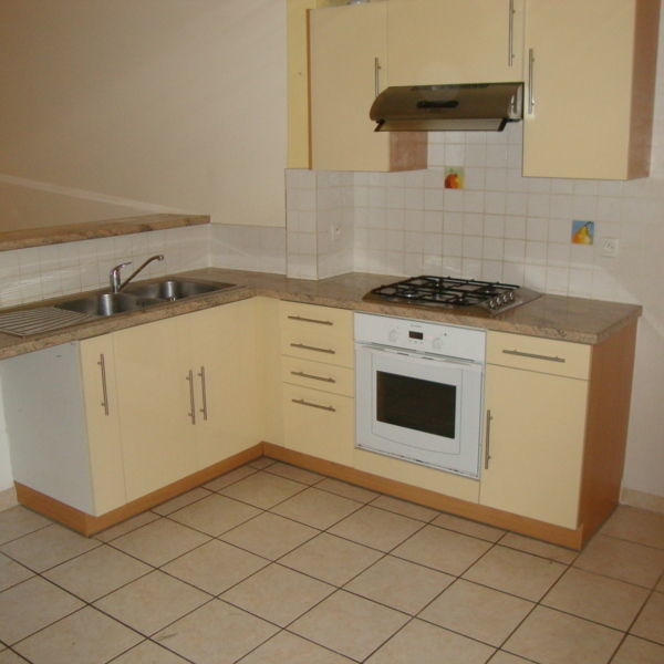 Entrée sur salon/séjour avec placards - coin cuisine meublée et en partie équipée ( four - hotte - plaque gaz) - 2 chambres dont une donnant accès à la cour intérieure - vaste salle d'eau avec WC