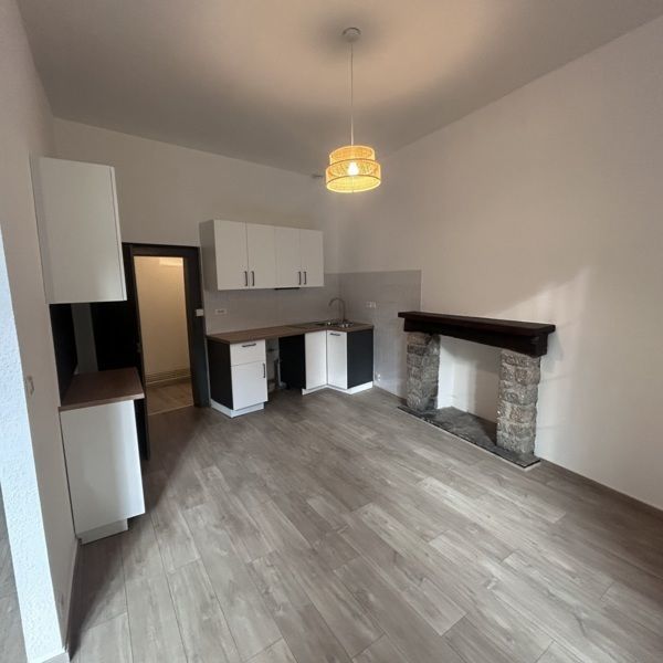 Vaste entrée - salon/séjour avec coin cuisine meublée - chambre - salle d'eau avec WC - buanderie