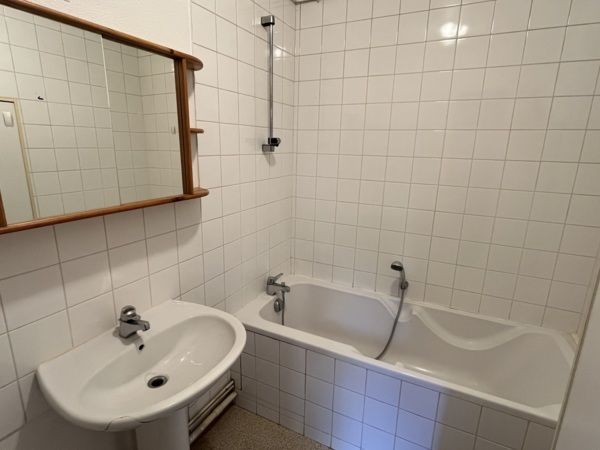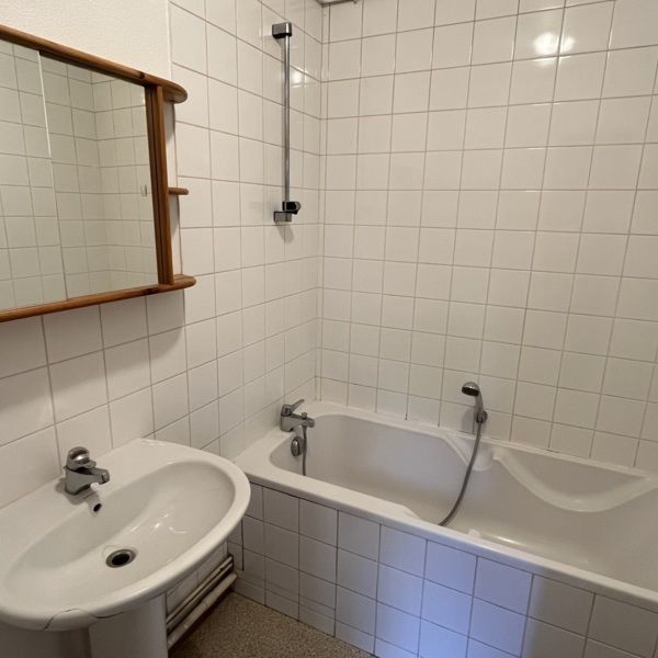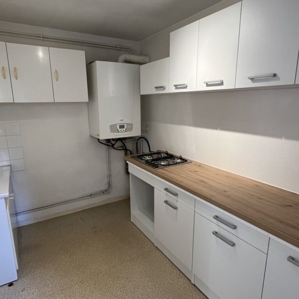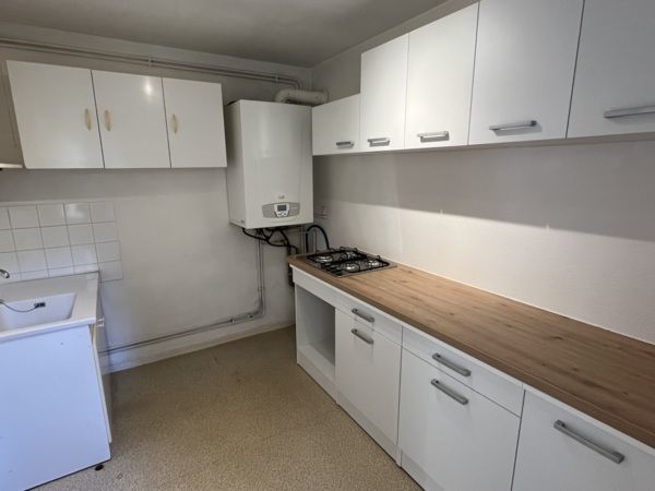 Entrée avec placard - cuisine meublée et en partie équipée (plaque feu gaz de ville) - grand séjour - salle de bains avec baignoire - WC séparé - 2 chambres