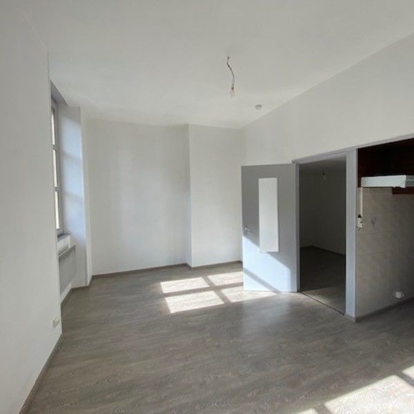 Salon/séjour avec coin cuisine meublée et en partie équipée (hotte) - 2 chambres - salle d'eau avec WC