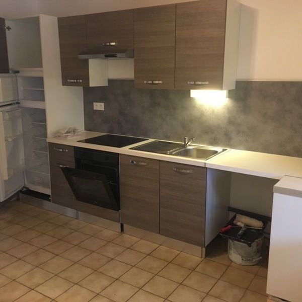 Sas d'entrée - cuisine meublée et entièrement équipée (Four - plaque à induction - hotte - lave-vaisselle - frigo) - séjour - chambre parentale avec placards - bureau - salle de bains avec WC